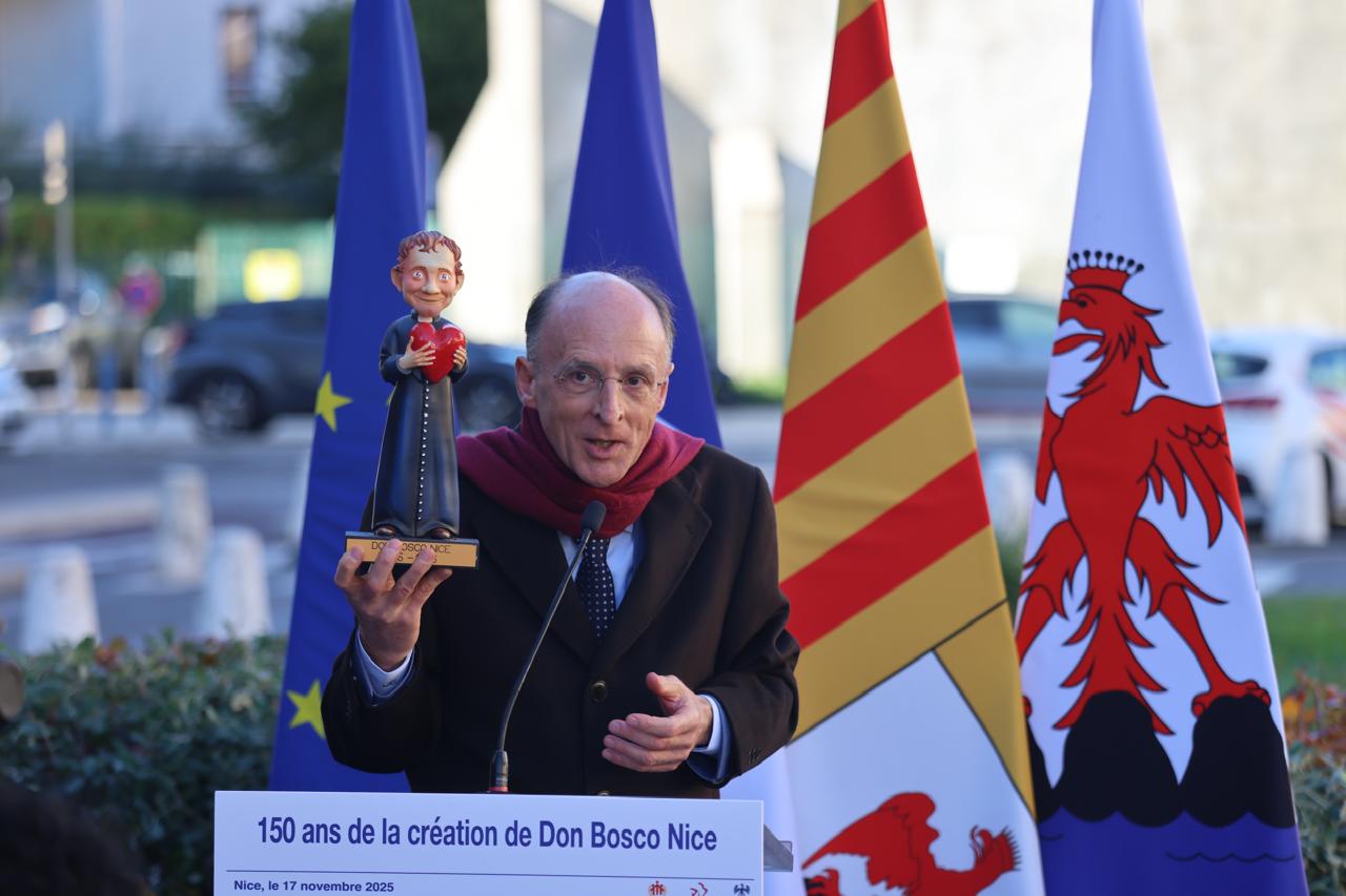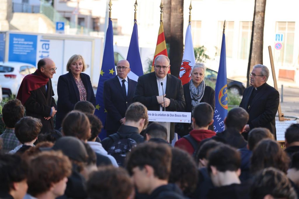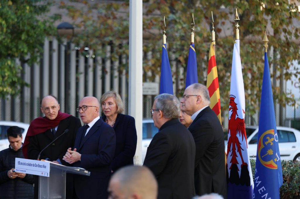 « Nous sommes réunis dans cette circonstance exceptionnelle de la célébration du 150e anniversaire de la création de Don Bosco Nice par Don Bosco lui-même, en la présence du Père Fabio Attard son successeur, que nous remercions infiniment d’être présent parmi nous depuis vendredi. Quelle joie pour toute la communauté éducative de Don Bosco Nice !« , a souligné Daniel Gouilly, le chef d’établissement, en ce lundi matin, devant les élèves de l’établissement, mais aussi Mgr Jean-Philippe Nault, évêque de Nice, Laurence Navalesi, conseillère municipale, déléguée aux relations transfrontalières, à l’enseignement privé et aux cultes, ainsi qu’Eric Ciotti, député.