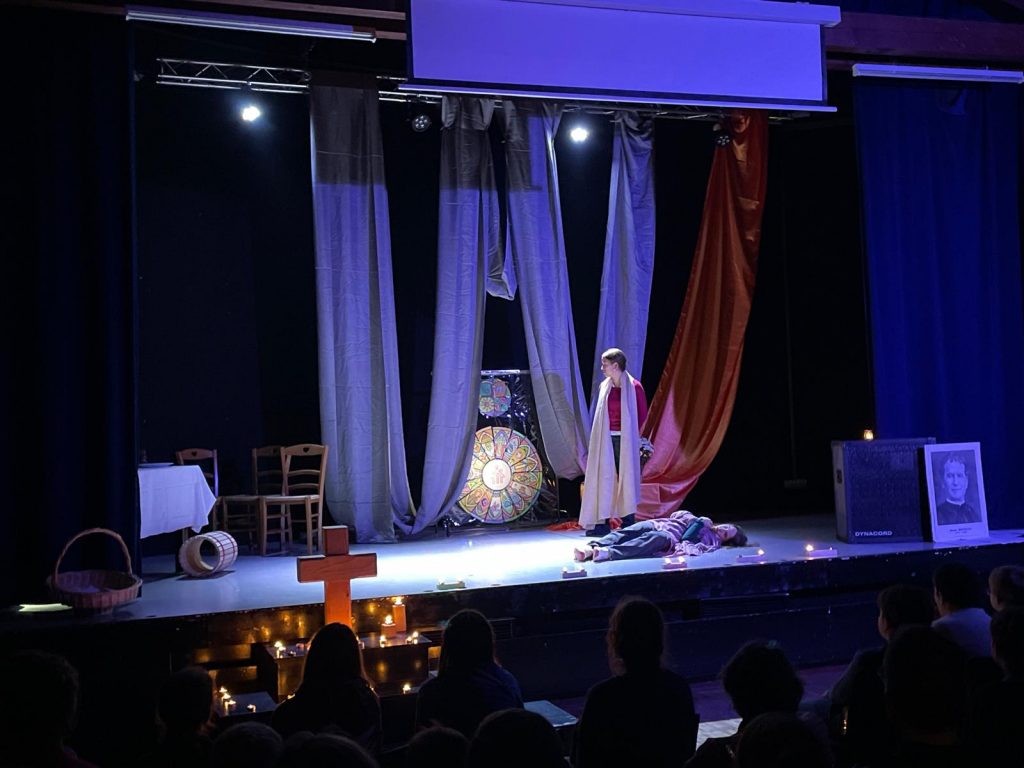 Quatre mots du soir : qui dit veillée salésienne dit forcément un mot du soir avant de partir se coucher. Ce rituel pratiqué par maman Marguerite à ses enfants, dont le petit Jean Bosco, où elle les invitait à réfléchir, le soir, sur les faits et gestes de leur journée, fut ensuite repris par Don Bosco avec ses jeunes et fait partie intégrante de la pédagogie salésienne. Se sont succédés à l’exercice, les quatre soirs, sœur Anne Orcel, salésienne, communauté de Lille ; le frère Nicolas Schreiber, salésien, communauté de Liège ; Emilie, Alice et Anne-Lise, trois sœurs originaires de Paris ; et Mats Hovelaque, de Bruxelles, qui part dans les prochains jours en Tunisie en volontariat salésien (VIDES).