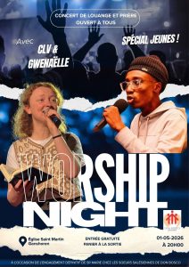 La veille, vendredi 1er mai, à 20 h, soirée de louange chrétienne (reggae et rap), à la salle Don Bosco, 36 rue Vanderveken, à Ganshoren avec : Gwenaëlle et CVL. Entrée libre (panier à la sortie).